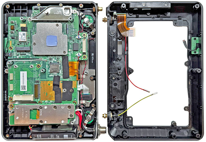 The images below show the backside of the VIKING II with the die-cast aluminum plate removed. Note the thermal pads and blocks on the metal plate. RuggON adds those for heat transfer and dissipation from integrated electronics as well as optional modules.