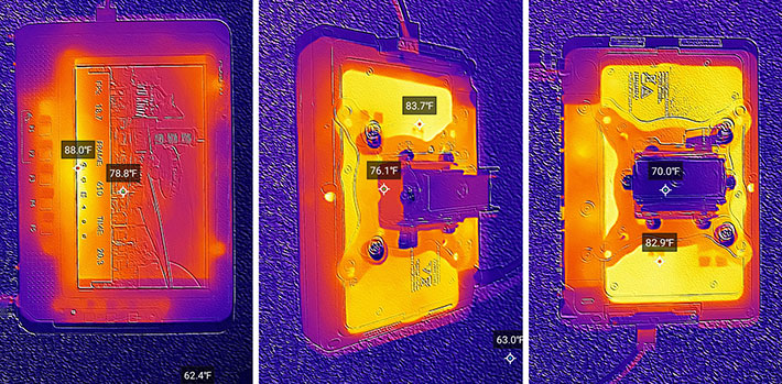 The image above shows the VIKING II's thermal footprint, captured using our lab's 640 x 512 pixel AI-enhanced ThermoVue Pro thermal imaging camera. The infrared image illustrates how efficiently the system manages heat — our review unit remained cool under load, thanks to the large-surface-area metal heat exchanger that spreads and dissipates thermal energy exceptionally well.