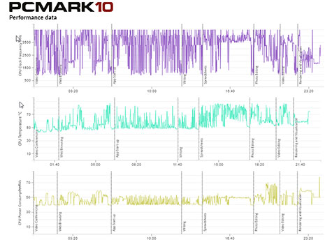 These included PassMark PerformanceTest versions 6.1 and 9.0, which assess CPU, 2D and 3D graphics, memory, and disk performance, then compute individual and overall scores. We also used the CrystalMark benchmark suite, which provides subsystem scores with a single-core performance focus, as well as PCMark 10, 3DMark, and Geekbench.