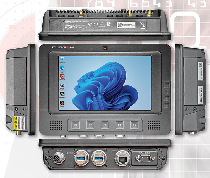 Below is a view of the RuggON VORTEX from the front and all four sides. While it may resemble a tablet from the front, it's clear upon closer inspection that the VORTEX is a heavy-duty, industrial-grade computer — one that brings the full power of Microsoft Windows, along with its vast software ecosystem and global IT support, into demanding vehicular environments.