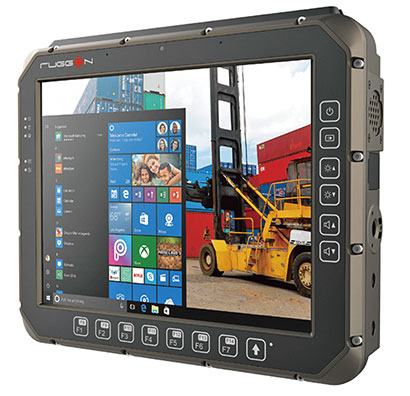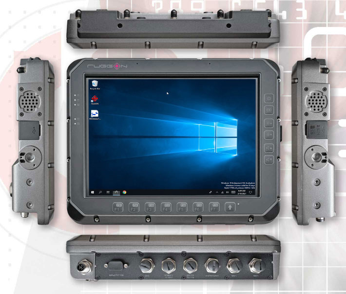 While bringing a good part of stand-alone tablet computer functionality into any cockpit, the RuggON VULCAN X is designed from the ground up as a vehicle-mount system. It looks like a tablet when viewed from the front, but while tablets are designed to be light and slender, this vehicle computer is built like a tank. Solid metal construction means the VULCAN X weighs over seven pounds, not that it matters in vehicles that may weigh tens of thousands of pounds.
