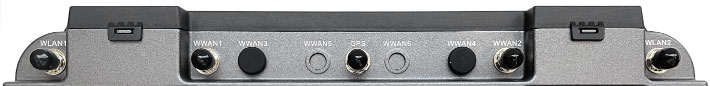 The housing has six I/O port openings, as well as up to nine available external antenna port cutouts reserved for use with rapidly emerging 5G WWAN applications. Below is a look at the VULCAN X from the front and from all four sides: