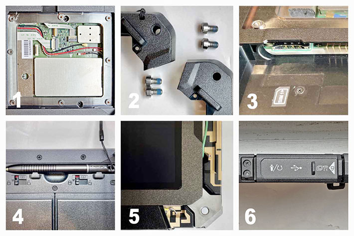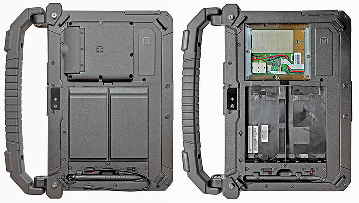 Both have a micro SD card slot and both have dual SIM functionality. Both have an e-SIM, but the ZX10 has a physical nanoo-SIM whereas the UX10 uses the smaller nano-SIM. The UX10 offers more expansion and configuration options such as LAN, COM and VGA port option in its expansion slot area, but both platforms can be equipped with 1D/2D barcode readers and SmartCard readers. The UX10 has both a USB-A 3.2 Gen 2 port and a Thunderbolt 4 Type-C port, whereas the ZX10 G2 is a bit more limited with a USB-A 2.0 host port and a USB-C 3.2 Type 1 with DisplayPort functionality and power delivery. The latter serves to charge the ZX10. There is no more traditional power jack, though the tablet still comes with a small 60 Watt "power brick" and not just a generic USB charger.