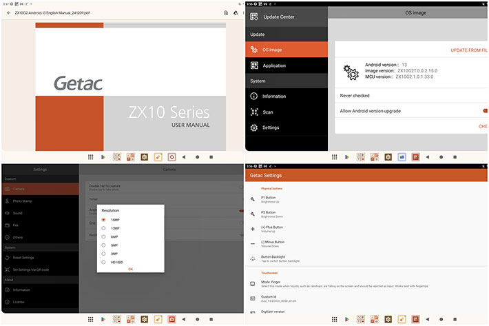 In the field, users need quick access to often-used functions and applications, and the quicker and easier it is to find and access those functions, the better. For that reason, Getac ships the ZX10 with a number of useful utilities such as Getac Input Method, Getac Camera, and the Getac Settings apps and utilities.